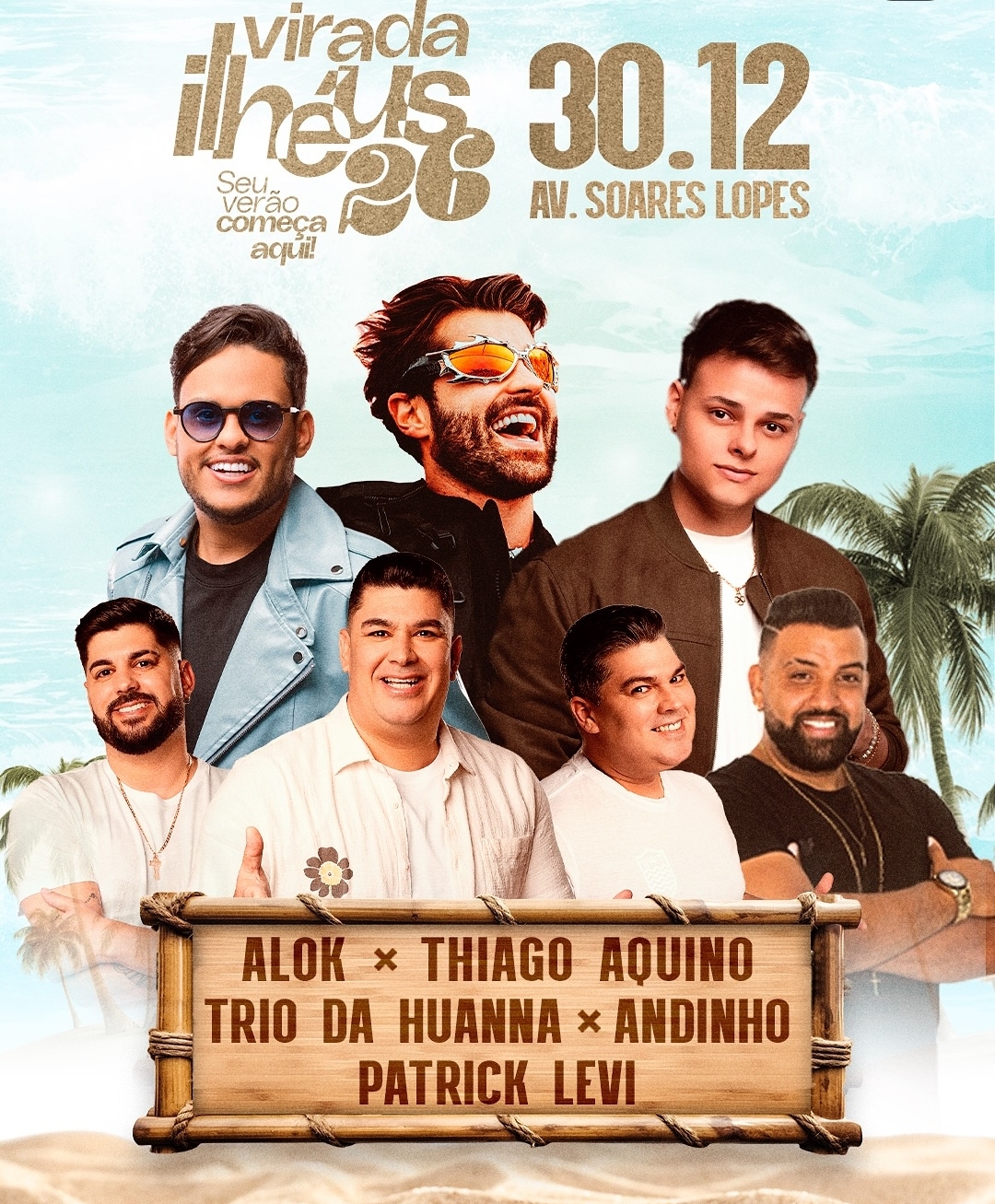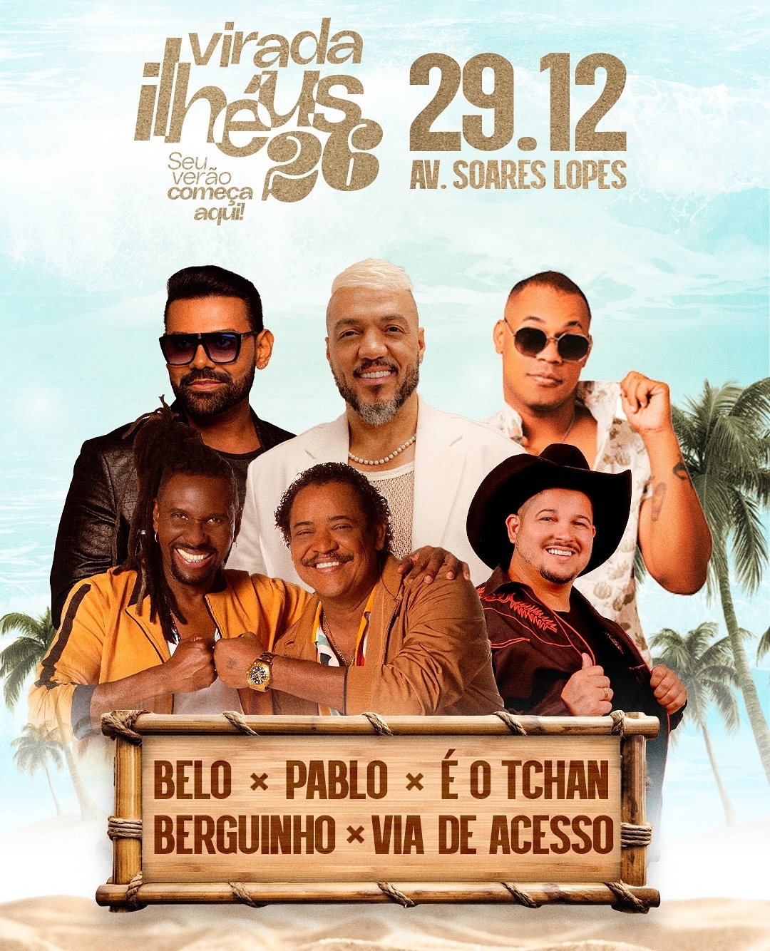 A Virada Ilhéus 2026, o novo réveillon da cidade, acontece nos dias 29, 30 e 31 de dezembro, na Avenida Soares Lopes. O público poderá acompanhar uma programação diversificada, que reúne nomes da música nacional e talentos locais. Entre os artistas confirmados estão nomes como Alok, Pablo, Belo, É o Tchan!, Manu Bahtidão, Parangolé, Thiago Aquino e mais.